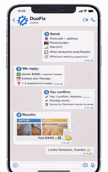We are very happy with the quick and clean work. They fixed a loose cabinet door and re-sealed the shower in one visit. Communication in English was clear and the quote matched the final price.